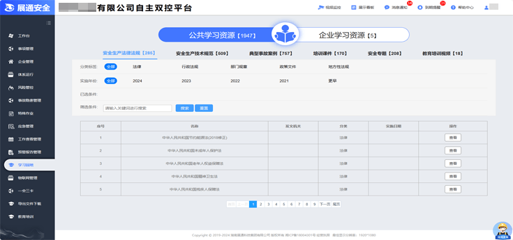 平臺配置法律法規(guī)、技術(shù)規(guī)范、典型事故案例、安全專題、培訓(xùn)課件等多個維度學(xué)習資料,并定期更新。企業(yè)可根據(jù)需要自主下載,也可上傳本單位學(xué)習資料,提高安全管理專業(yè)知識與技能水平。